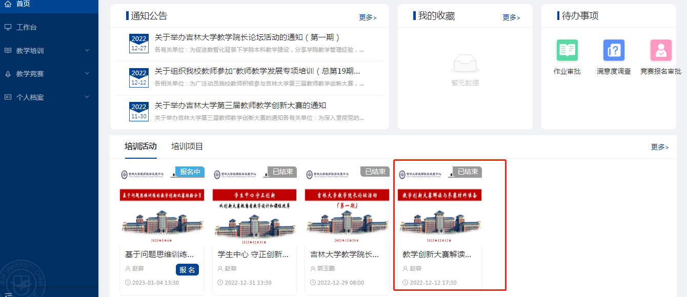 回放须在校园网或VPN网络环境下,登录教师教学发展数据与业务管理系统(https://jfywxt.jlu.edu.cn),依次点击“XX培训”→“视频播放”,观看视频。
