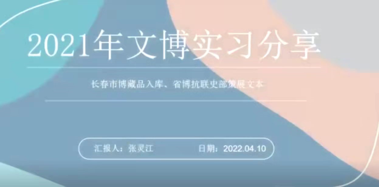 随后,来自19级的四位同学作了经验分享。郝雨卓同学就博物馆实习工作中的新媒体宣传工作和社教活动与实习感悟进行分享。梁开来同学从策展角度出发,以自己参与的通草画展览和吉林省历史陈列展的经历为主线传授经验,并为同学们带来了充实愉快的实习趣事。张灵江同学从藏品入库和策展角度为大家带来了如何从零开始完成工作的宝贵经验。焦越涵同学阐述了观众调查、展厅服务和文创设计三个方面的经验,并向同学们提出了建议。